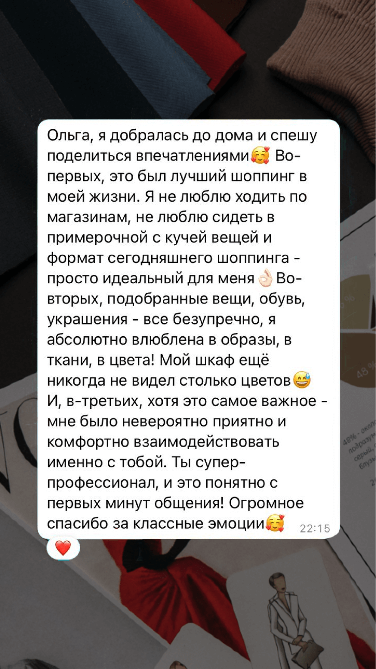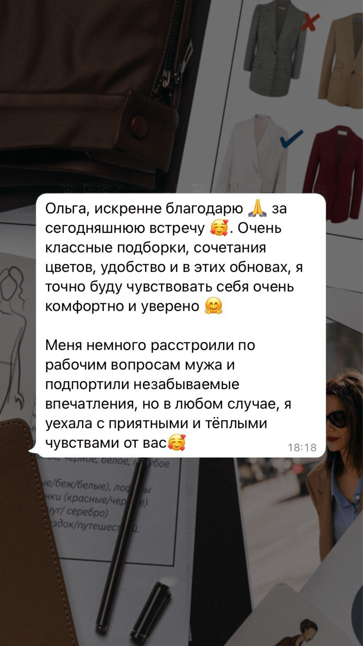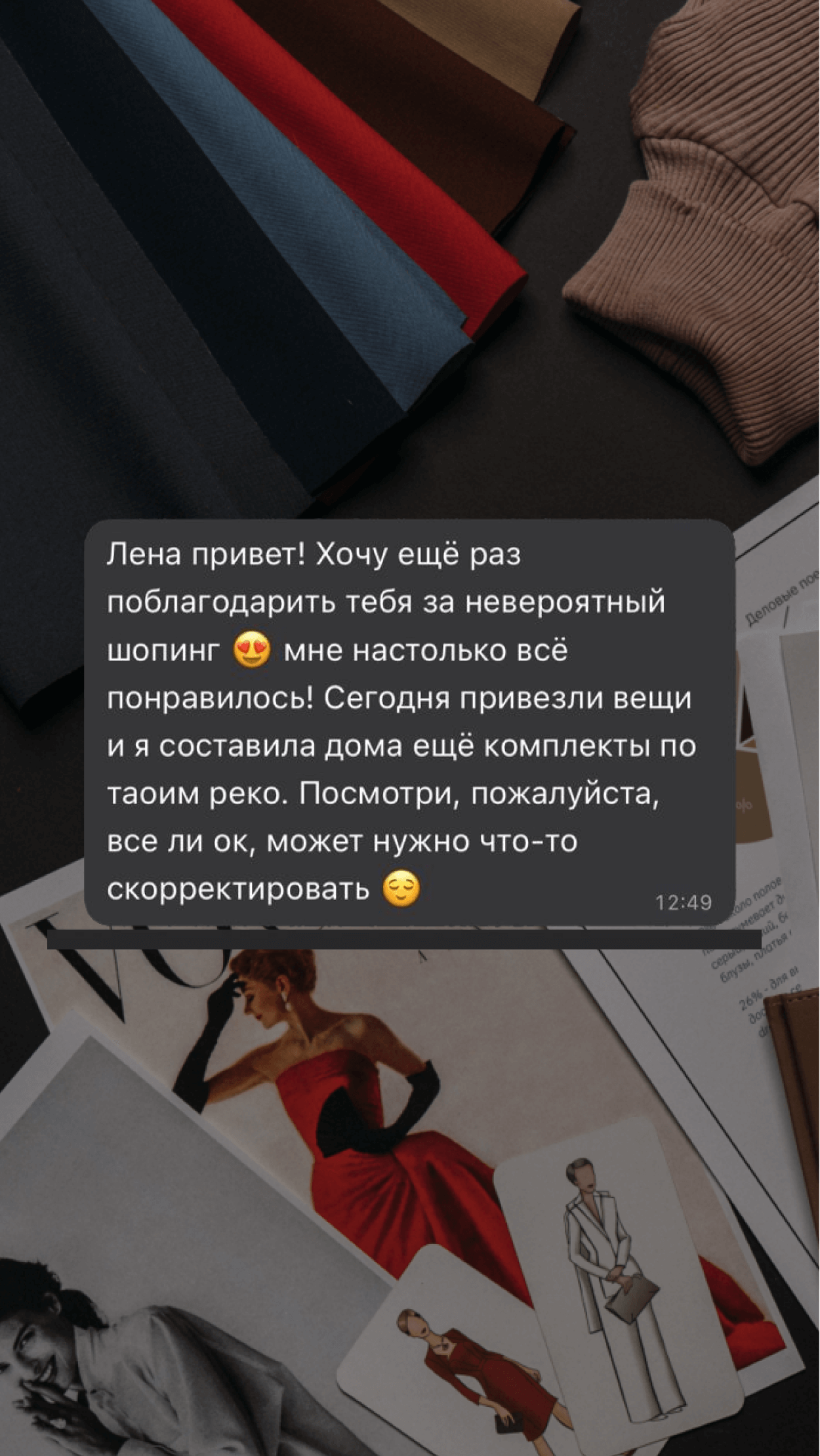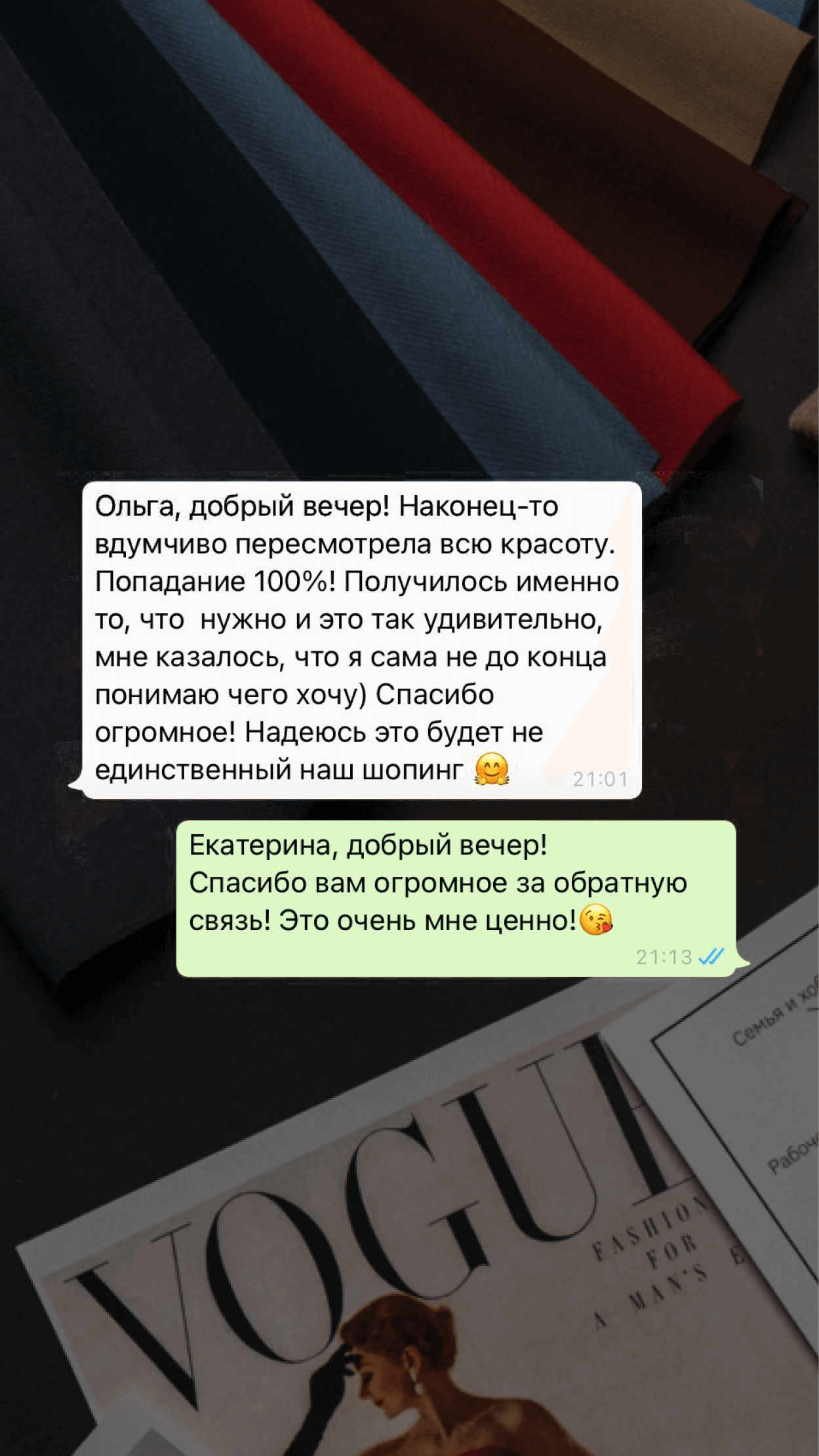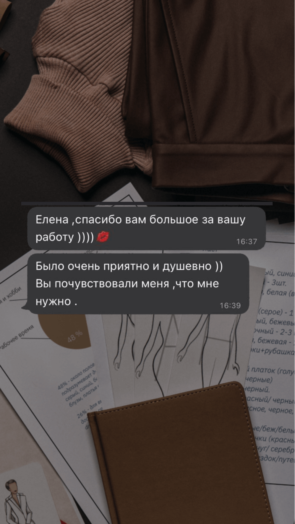 Онлайн или лично. Обсудите ваши пожелания, жизненные цели и отношения с одеждой.