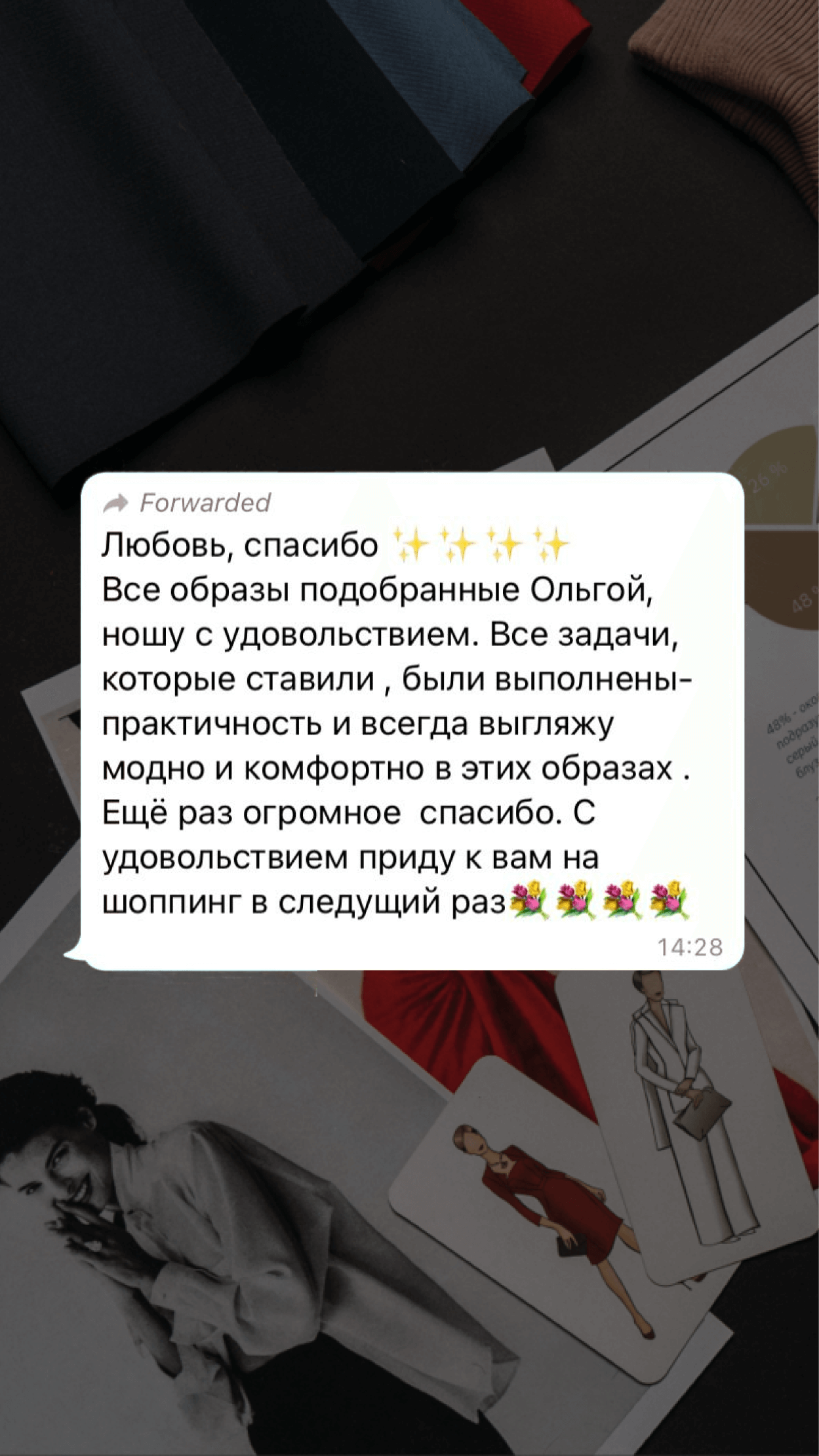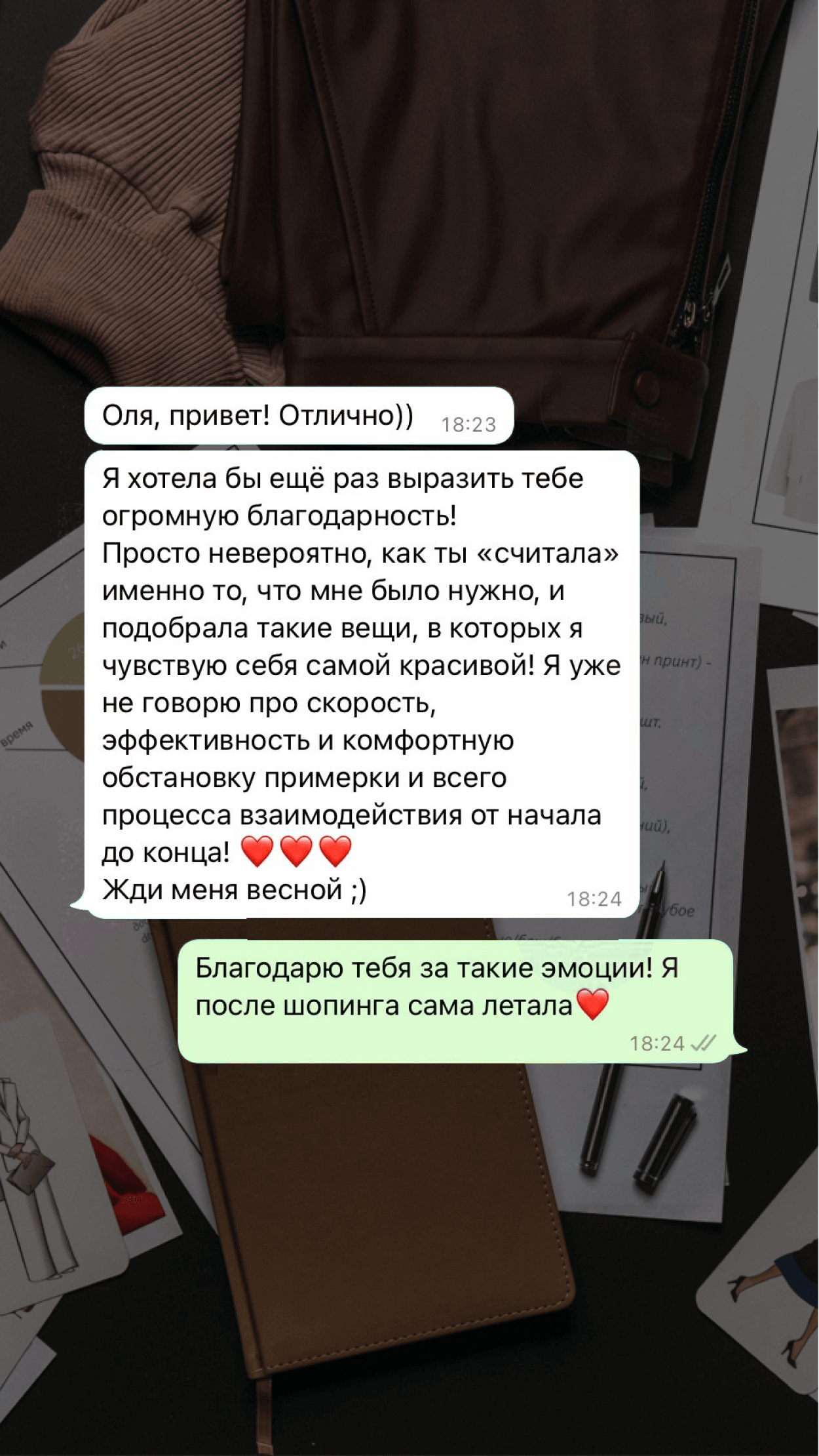 Вы сможете насладиться новыми образами, комфортной атмосферой персонального шопинга и 100% вниманием стилиста.